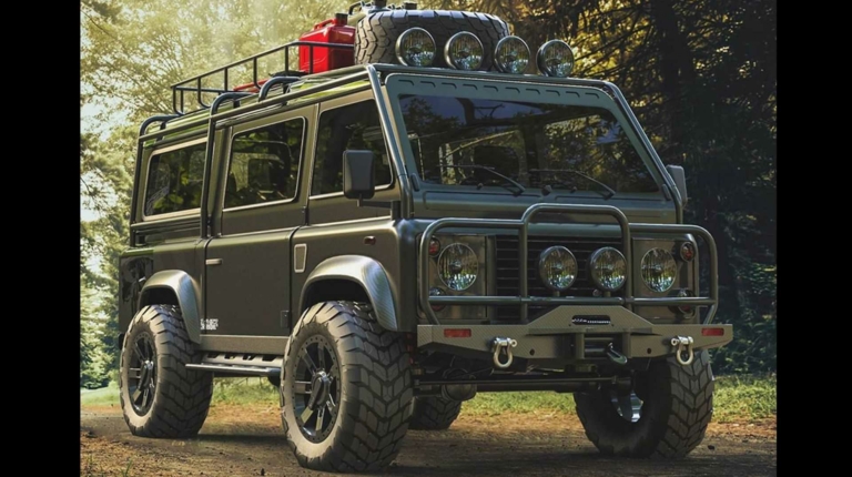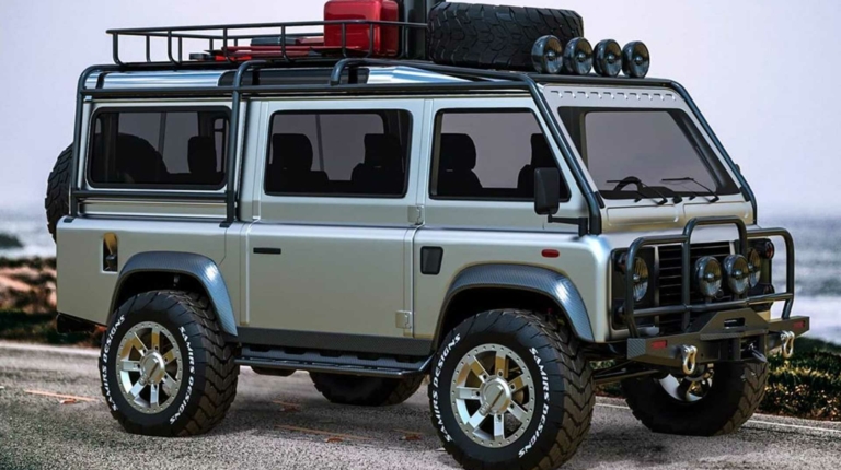 В качестве основы для виртуального проекта использовали короткобазный Land Rover Defender 90. В задней части почти не произошло изменений, но спереди внедорожник здорово преобразился. Кабина вместе с местом водителя и всеми органами управления буквально переехала на переднюю ось.