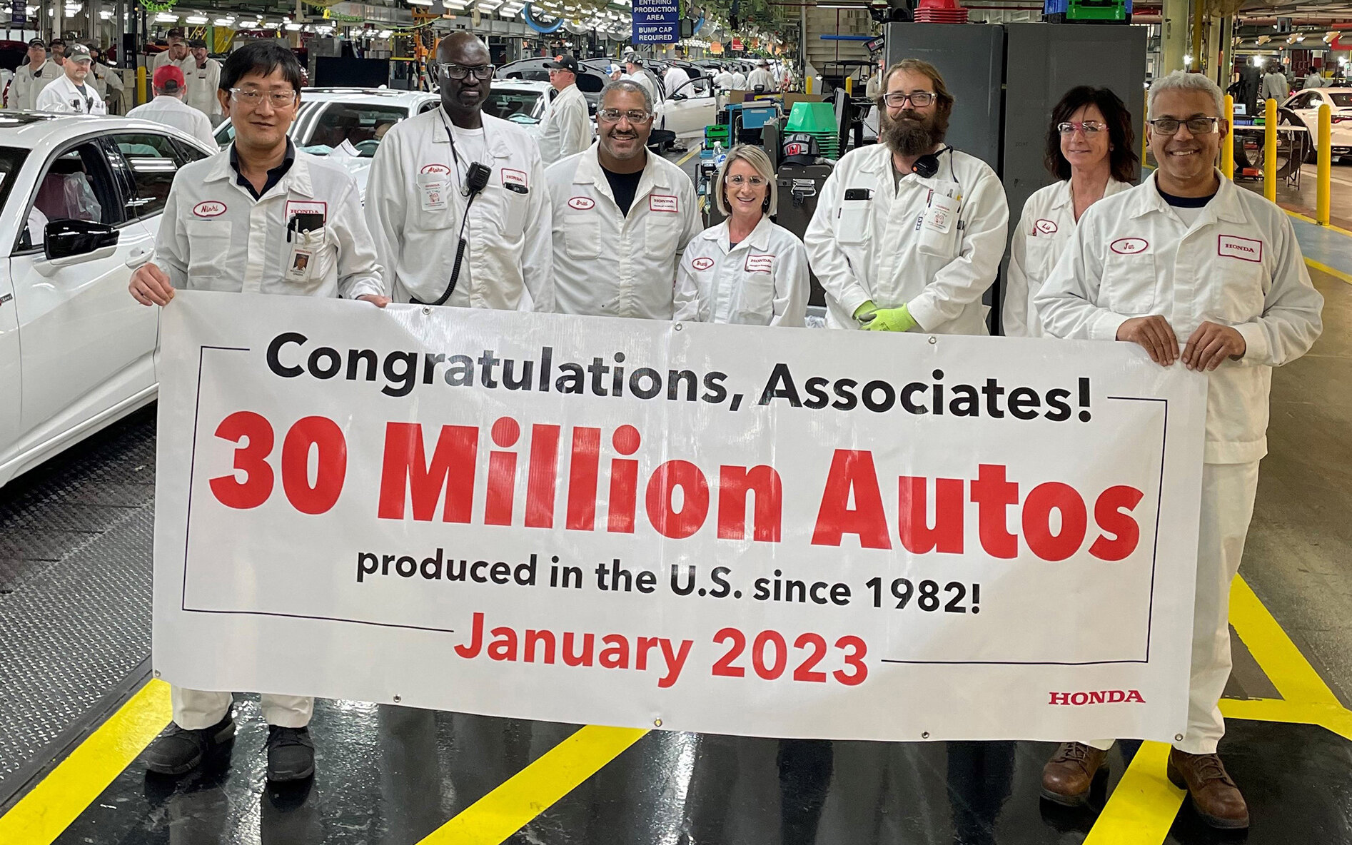 Американское подразделение Honda Motor отчиталась о выпуске 30-миллионного автомобиля марки в США. Как сообщила пресс-служба концерна, «юбилейный» экземпляр сошел с конвейера 19 января 2023 года. Это произошло через 41 год после запуска производства автомобилей марки в США. Таким образом, в среднем американские заводы Honda собирали около 732 тысяч автомобилей в год.