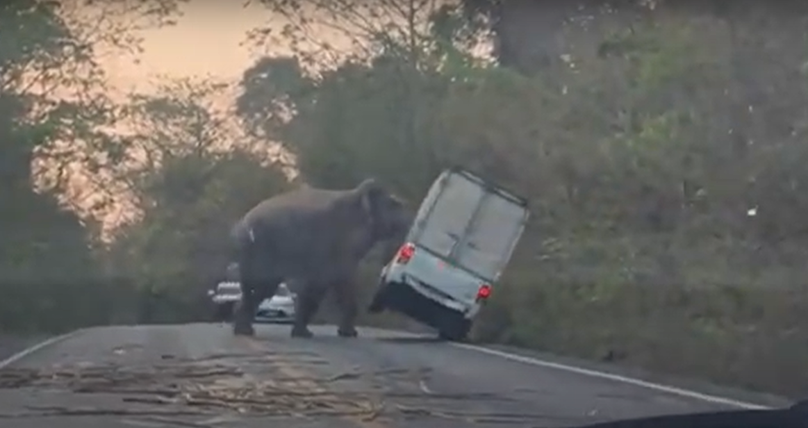 Слон подошел к машине и начал толкать ее хоботом. Он остановился только после того, как грузовик упал на бок и скатился в кусты. Все это время водитель находился в салоне. Свидетели инцидента вызвали службу спасения, но дикое животное ушло в лес раньше их прибытия.