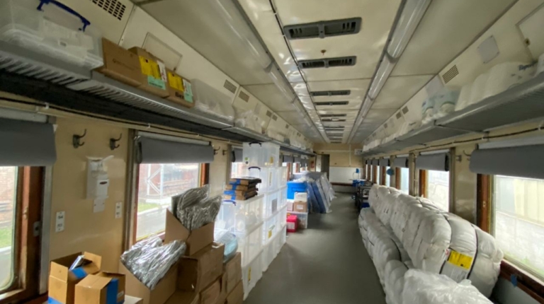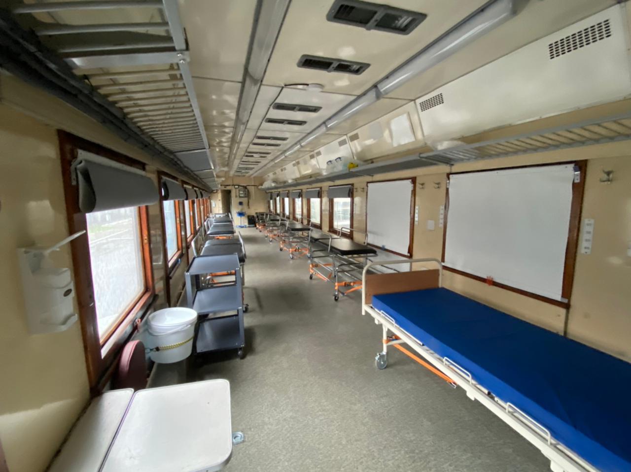 Поезд-минигоспиталь состоит из нескольких вагонов, включая вагон интенсивной терапии. По данным Минздрава, международная медицинская гуманитарная организация «Врачи без границ» в настоящее время ищут украинских специалистов, которые могут приобщиться к работе команды эвакуационного поезда.