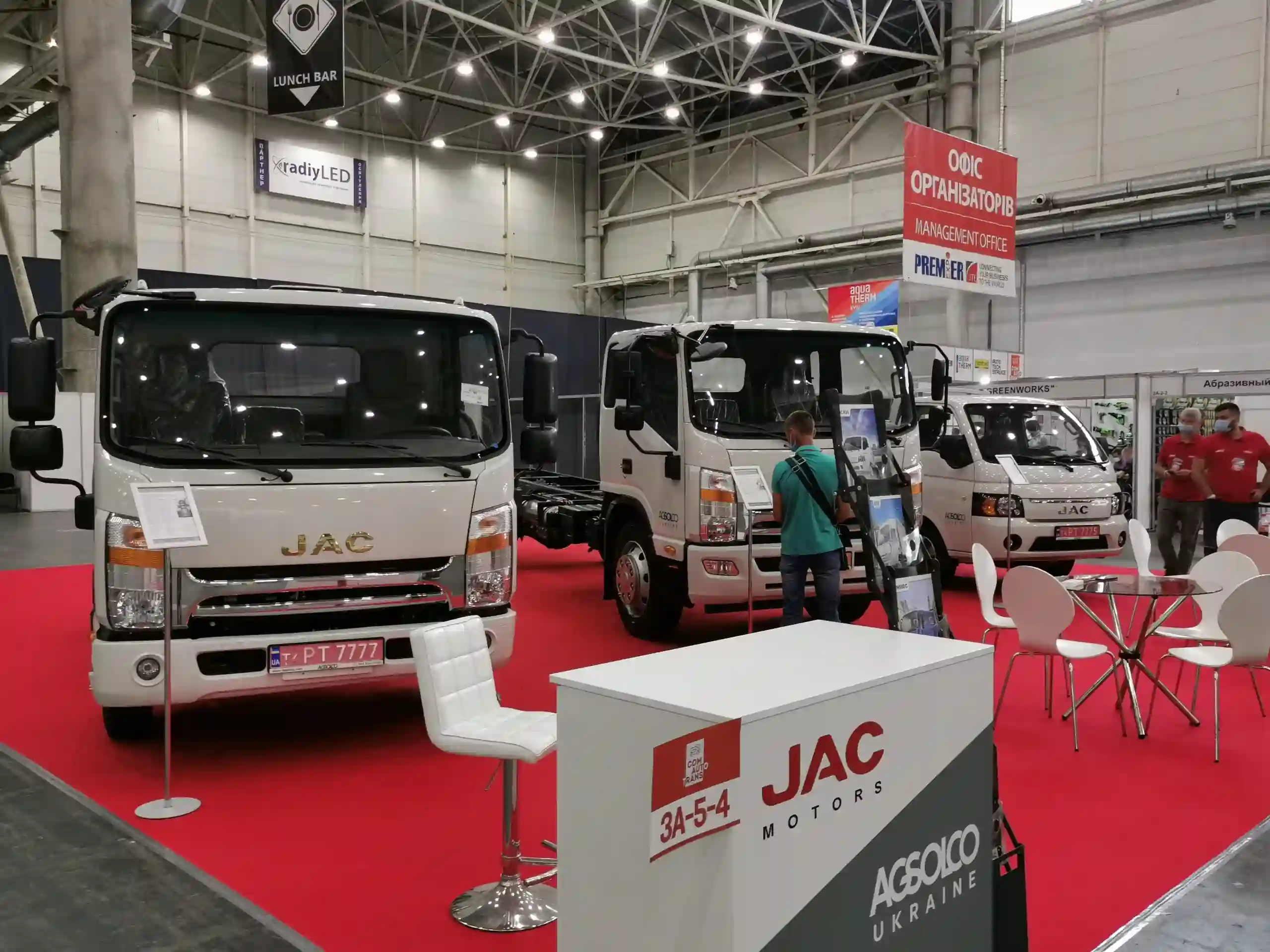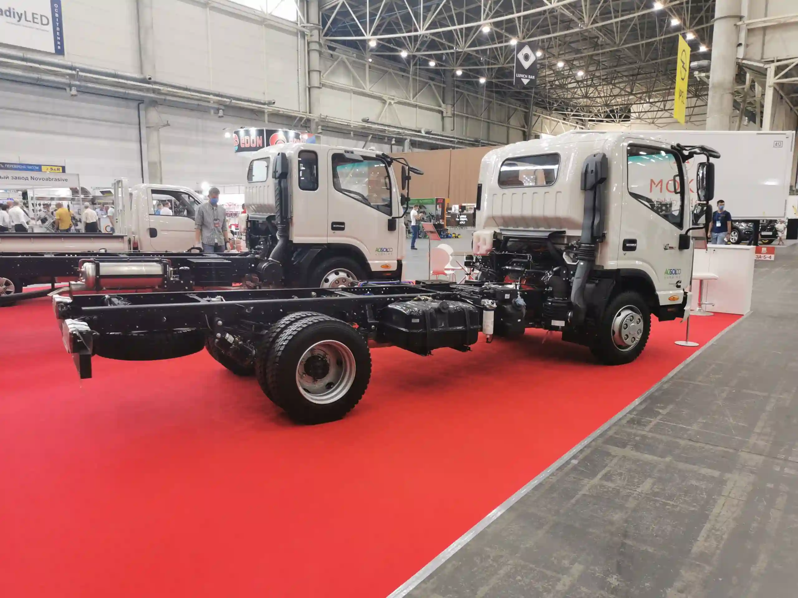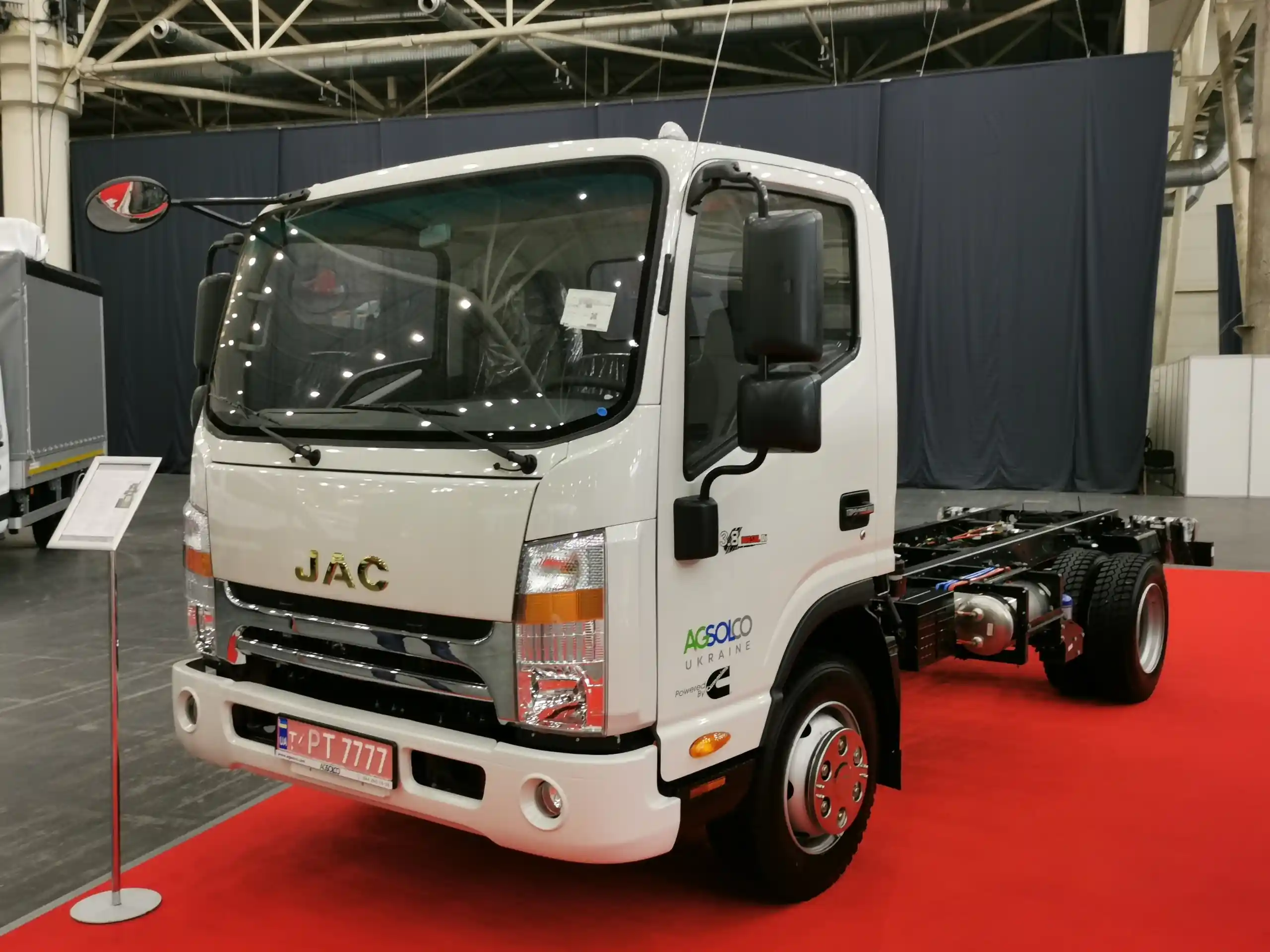 На стенде "Агсолко Украина" также можно увидеть и уже известные у нас, более грузоподьемные модели JAC. э о N75 полной массой 7490 кг и двигателем Cummins в 156 л. с. А также шасси N120 - с полной массой 11980 кг и двигателем ощностью170 л.с.