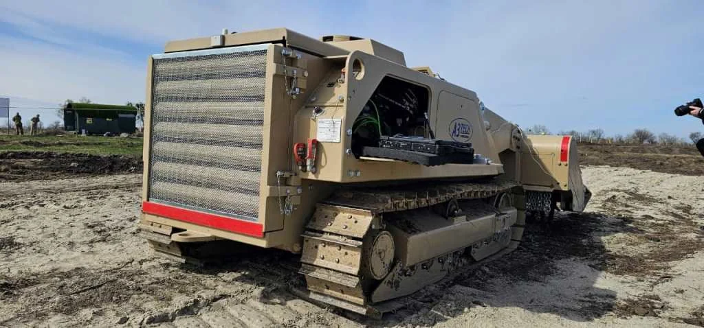 Как сообщила заместитель министра по вопросам стратегических отраслей промышленности Украины Анна Гвоздяр, это гусеничная роботизированная машина предназначенная для гуманитарного разминирования. Она на дистанционном управлении с дальностью связи до 1,5 километра.