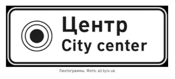 Кроме прочего, предлагается ввести пиктограммы, например, в обозначении центра города. Саму же городскую навигацию планируется наносить на белый фон, в отличие от загородней на синем фоне. Впрочем, такая практика была в Украине и раннее. Кстати, исходя из предоставленных рисунков, синий загородний фон будет более тёмным. Это очень похоже на тёмно-синий фон, используемый на немецких автобанах.