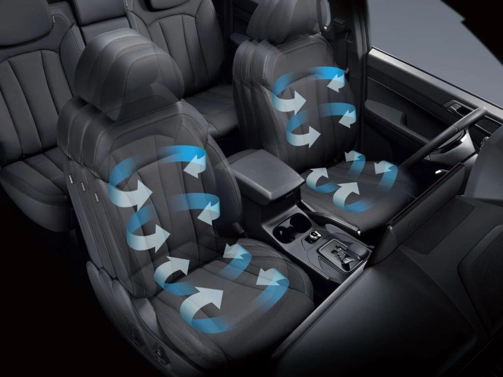 Внутри Musso и Musso Grand сочетают изысканность и современную атмосферу легкового автомобиля. Автомобиль уже в базовой комплектации оснащен системою «умныйключ» с кнопкой запуска двигателя, двухзонным климат-контролем, электростеклоподъемниками, электрическим регулированием, подогревом и складыванием зеркал, полноразмерным запасным колесом, передними противотуманными фарами и другими комфортными опциями.