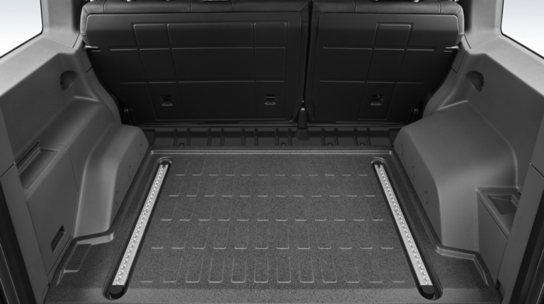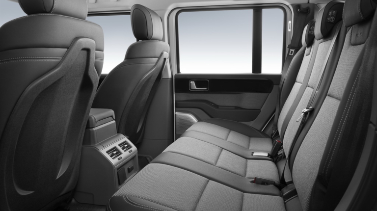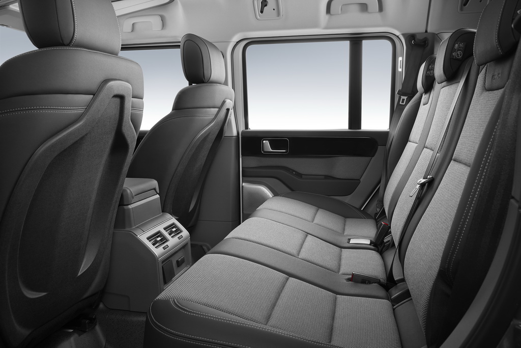 В интерьере центральний сенсорный экран инфо-развлекательной системы обеспечивает доступ к информаци и меню настроек. На верхней потолочной консоли размещены элементы управления для езды по бездорожью, а также вспомогательными функциями.