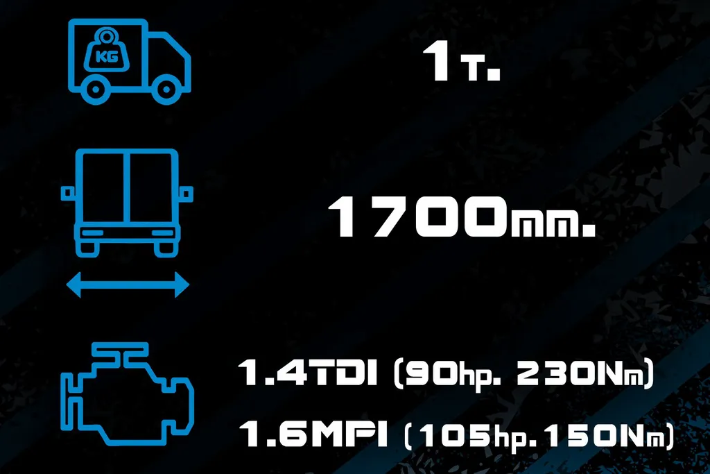 - Двигатели на выбор: турбодизель VW 1.4 TDI (90 л.с., 230 Нм) или бензиновый VW 1.6 MPI (105 л.с., 150 Нм).