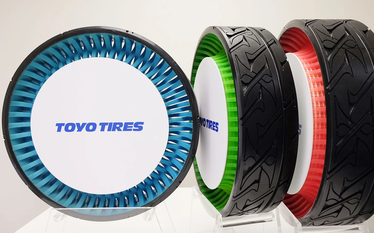Японский производитель автомобильных шин Toyo Tires приблизился к серийному производству безвоздушных шин. Специалисты компании сумели создать покрышку сравнимую по долговечности с обычными пневматическими. По сравнению с первым образцами этот показатель увеличен в 10 раз. А прочность шины на разрыв выросла на 40%.