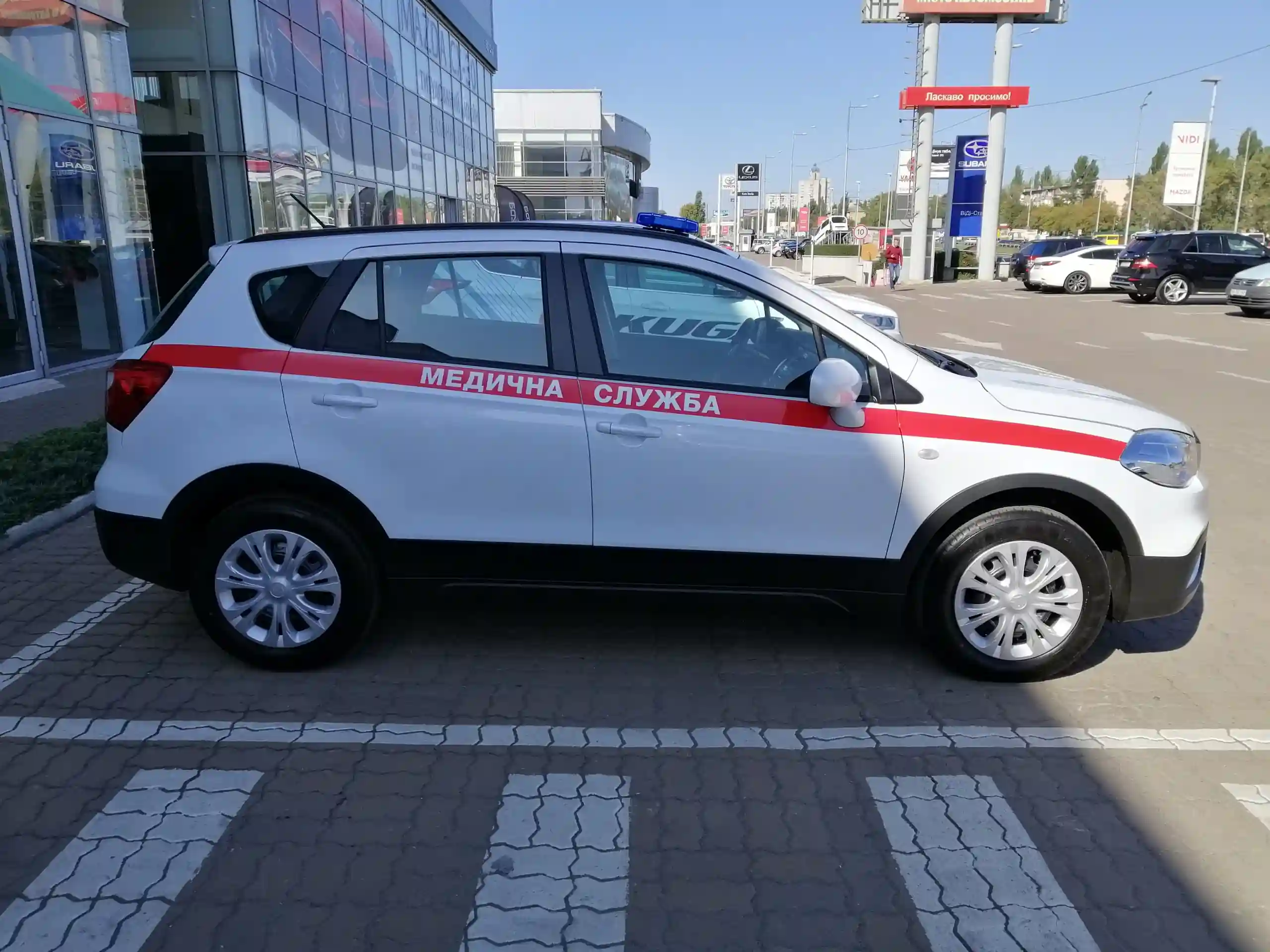 Был представлен также и автомобиль, который должен оперативно выезжать на вызовы, не требующие госпитализации пациента, а также служить для доставки медицинских работников к больным, которые требуют регулярного оказания медицинской помощи по месту жительства - медицинская машина на базе кроссовера Suzuki SX4.