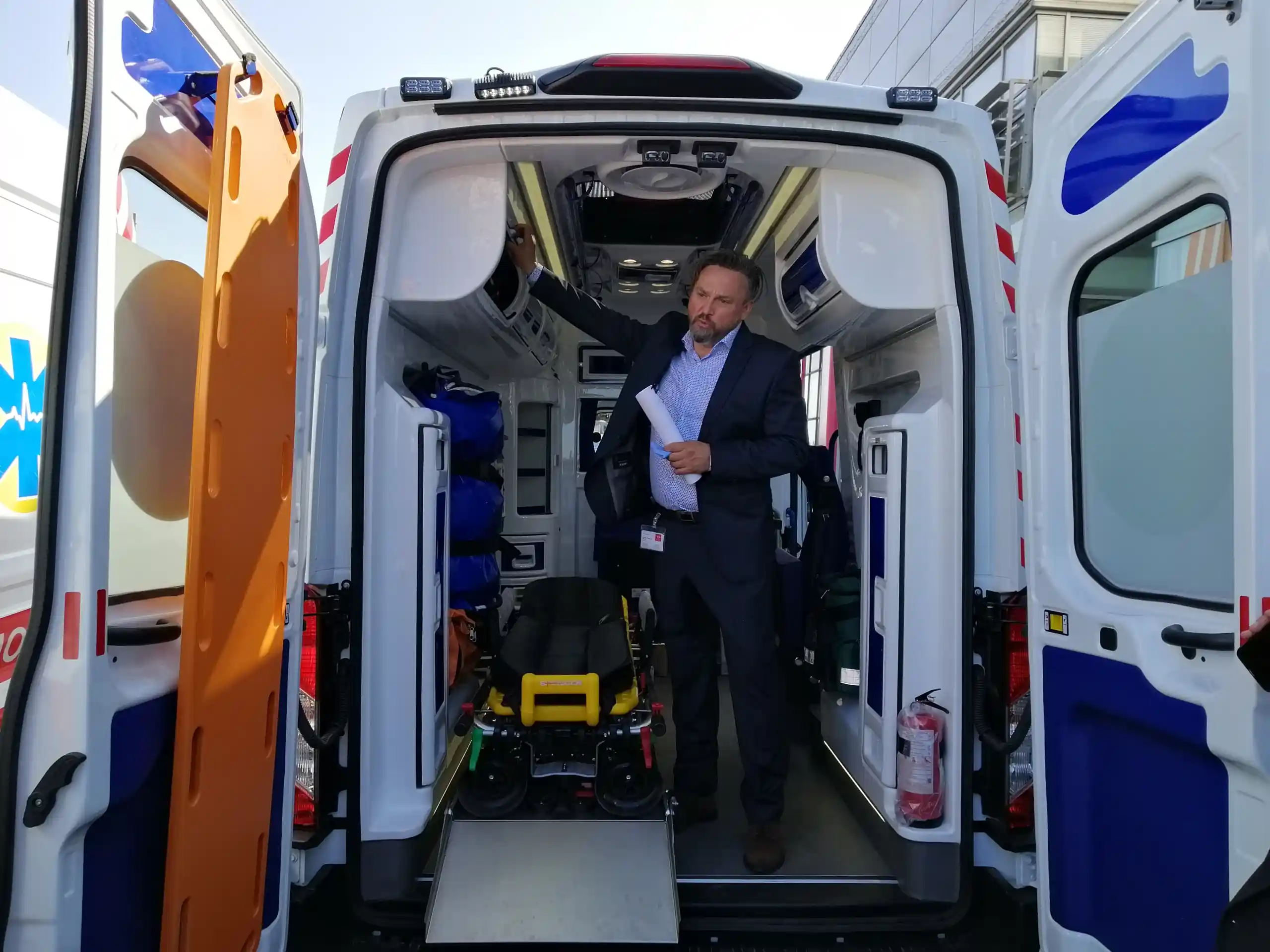 Представляя «скорую» типа «В» от VIDI на базе Ford Transit, коммерческий директор «ВиДи Юникомерс» Александр Строганов отметил, что обновленная «скорая» от украинского производителя прежде всего, отличается надежностью и всеми преимущество шасси Ford: здесь и оптимальность форм-фактора L2H3, и современный двигатель EcoBlue, что соответствует нормам Евро-6, мощность которого в обновлённых автомобилях составляет 170 л.с., и такие нужны в ежедневной эксплуатации опции, как задние парковочные датчики, подогрев лобового стекла и т.п. Как особенность "скорых" нынешней поставки, он отметил, что компания готова поставлять заказчикам автомобили на базе полноприводного шасси, которое производится заводом Ford.