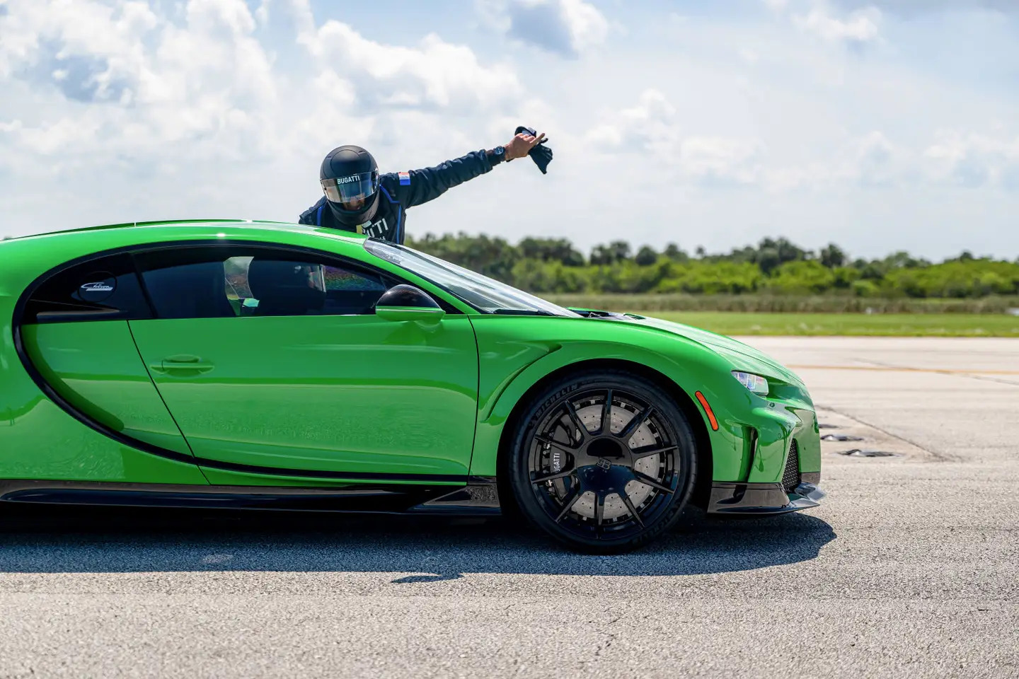 Перед заездом официальный пилот Bugatti проинструктировал участников как управлять автомобилем на скорости 400 км/ч. На такой скорости Chiron каждую секунду оставляет позади расстояние равное 1,25 футбольного поля. А при полном ускорении водитель испытывает перегрузку более 1G. Кроме того, водителю сложно заметить маркеры торможения.