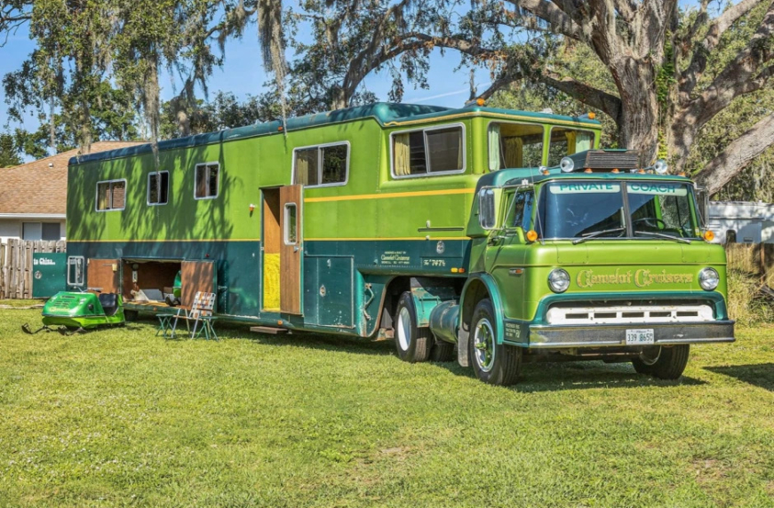 Автомобильный аукцион Bring a Trailer выставил на продажу «дом на колесах», построенный Edler & Company из Скоки, штат Иллинойс, на базе седельного тягача Ford C-750 1974 года и прицепа Gerstenlager.