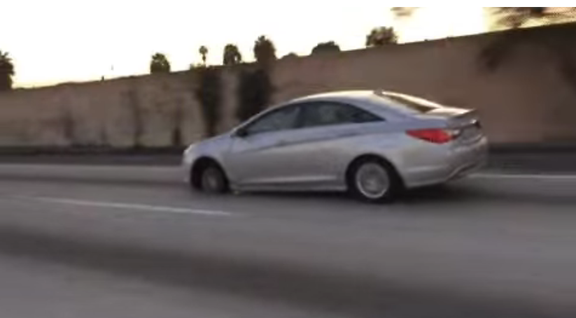Понять, что с покрышкой возникли какие-то проблемы, можно практически сразу, так как маневренность авто снижается, его начинает раскачивать, хуже работает тормозная система. При этом есть автомобилисты, которые могут ехать на машине, у которой отсутствует одна из шин, и это никак не влияет на стиль их вождения. Можно даже подумать, что они не знают о случившейся неприятности. Ярким тому примером стал водитель Hyundai Sonata. Он на полной скорости мчит по загородному шоссе, при этом на месте левого переднего колеса красуется только обод. Покрышка же давно исчезла.