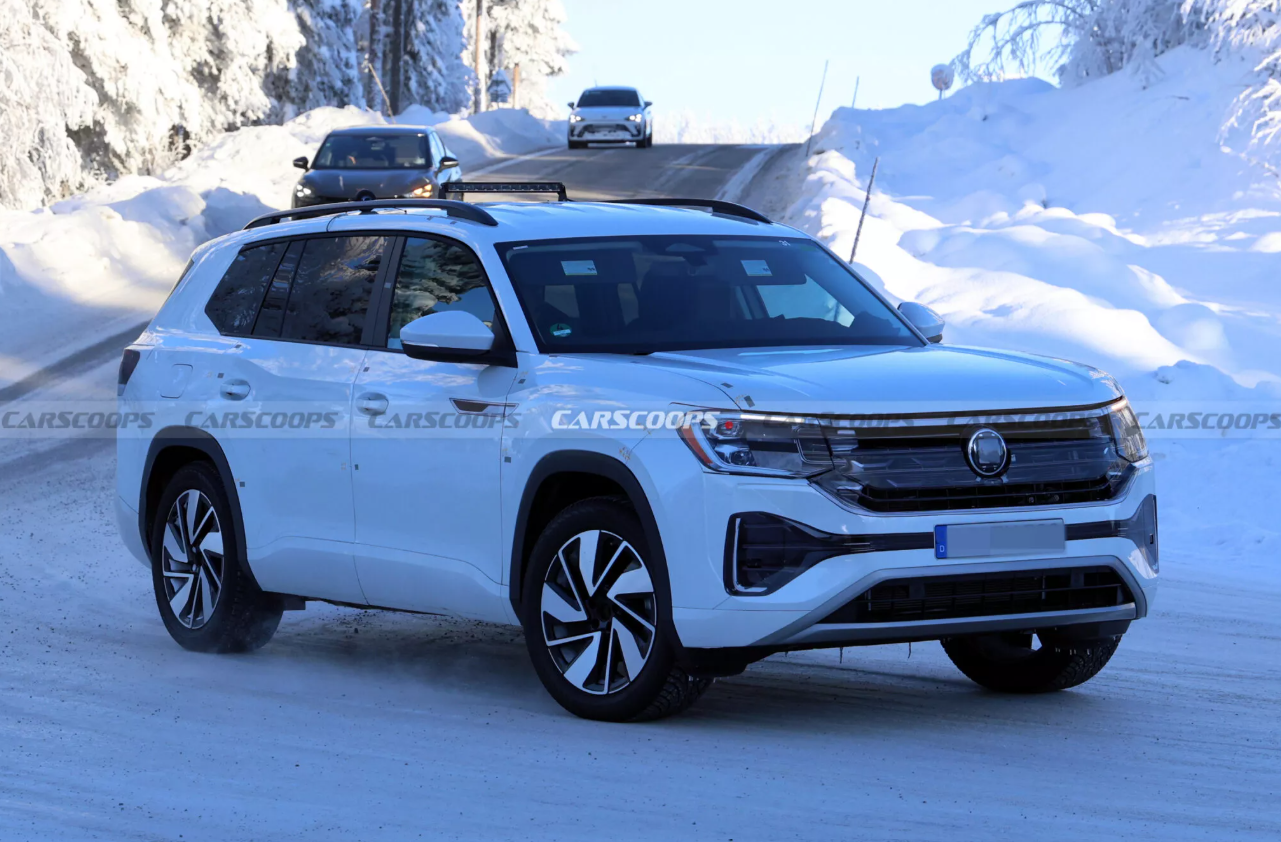 Тестовые мулы попали в объективы фотошпионов, которые и поделились снимками будущей новинки. Судя по фото, обновленный Atlas получил более лаконичный, эволюционный дизайн. У него новая решетка радиатора и увеличенные фары, которые выглядят более традиционно, чем С-образные у актуального Atlas. Передний бампер получил более обтекаемую форму и в него интегрирован трапециевидный воздухозаборник с ромбовидным наполнением.