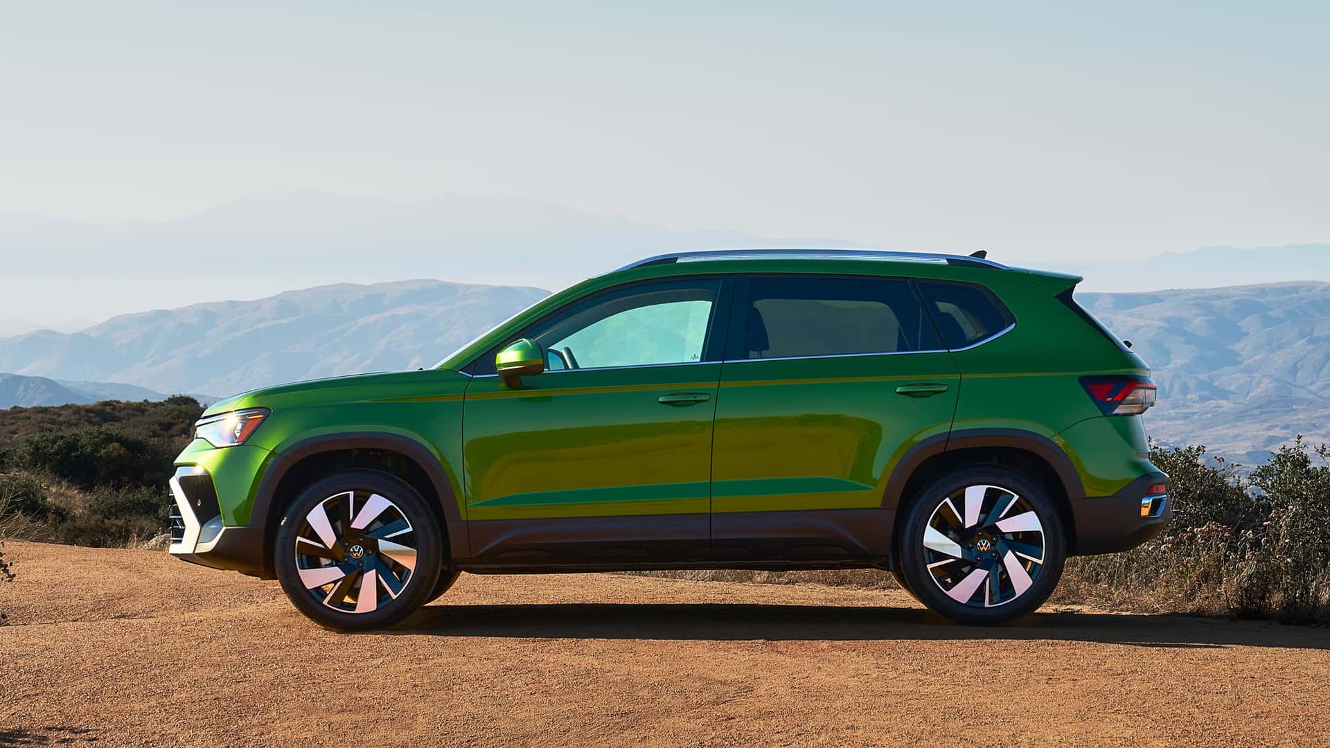 Рестайлинг принес Taos схожесть со всей остальной линейкой марки. Он получил узкую решетку радиатора, которая визуально соединена с новыми светодиодными фарами, и агрессивный передний бампер с крупным воздухозаборником. На корме внимание привлекают фонари вытянутой формы, которые объединены между собой тонкой светодиодной полосой с подсвеченной эмблемой Volkswagen в центре. Также модель получила новые варианты колесных дисков и расширенную палитру цветов для кузова, которая включает следующие оттенки: Bright Moss Green, Monterey Blue Pearl и Monument Gray.