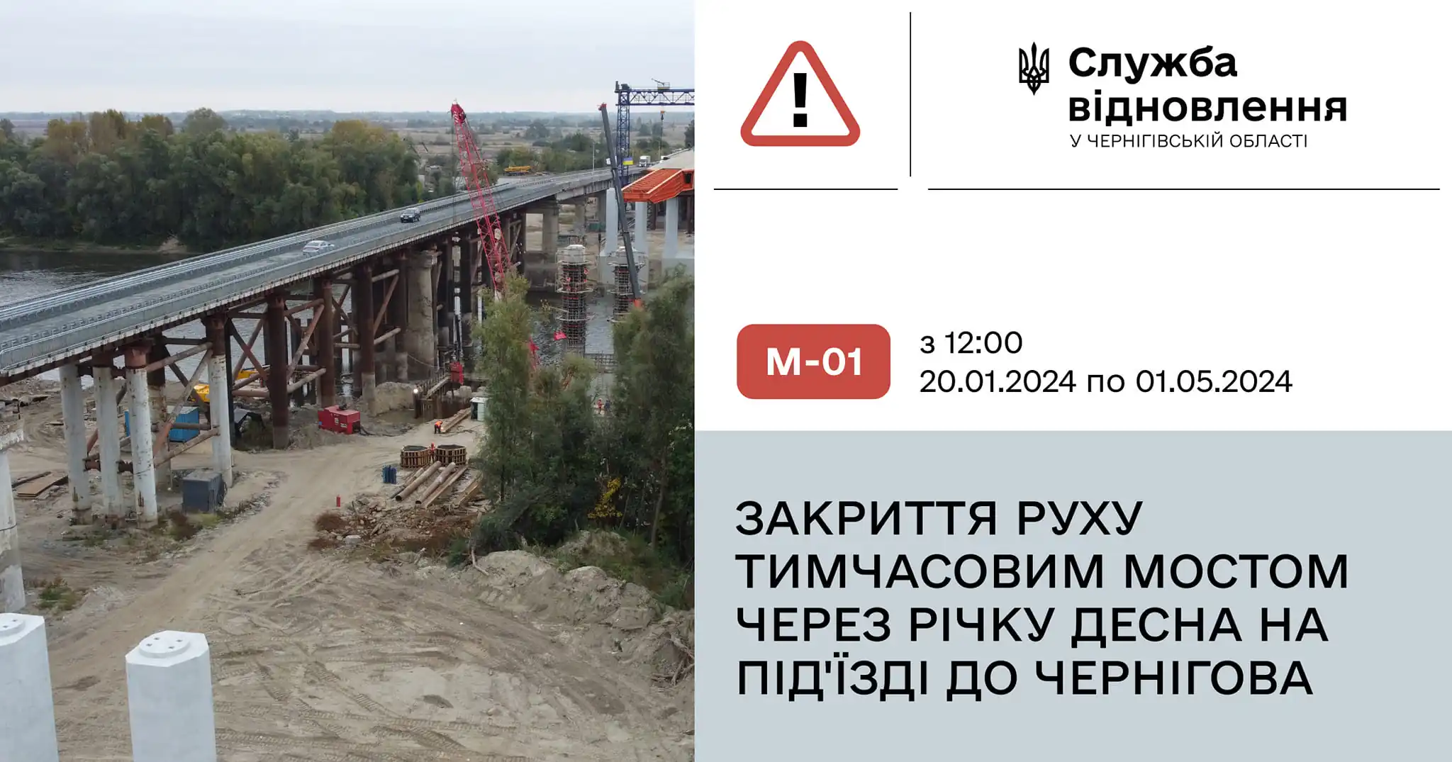 Альтернативный маршрут будет проходить по объездной Чернигова от Павловки до Ягодного. Ориентировочно, мост останется закрытым до 1 мая. Причиной принятия такого решения называют «техническую необходимость».