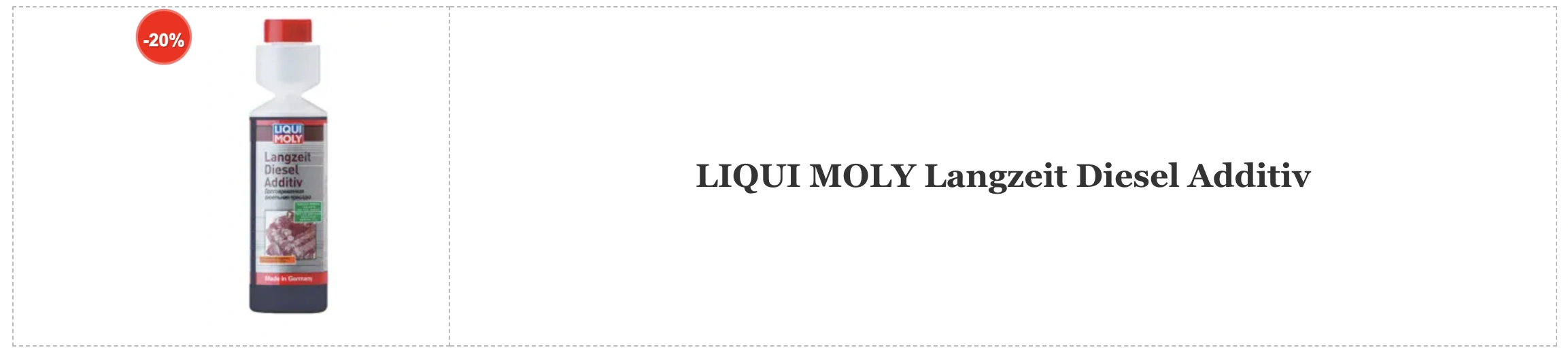 Для дизельних двигунів Langzeit Diesel Additiv також пропонує комплексний підхід. Ця присадка очищає систему впорскування і захищає від нагару, закоксовок і корозії, викликаних використанням неякісного палива. Присадка допомагає подовжити термін служби паливної системи і двигуна, знижує ймовірність несправностей, пов’язаних з паливом, і підходить для автомобілів із каталітичними нейтралізаторами і сажевими фільтрами.
