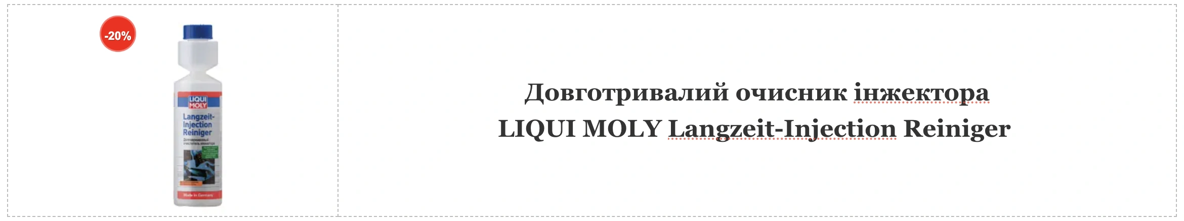 Як бонус — очищення паливної системи, покращення економії палива та підвищення експлуатаційної надійності можна отримати зараз зі знижкою 20%, оскільки до 24 листопада 2024 року LIQUI MOLY проводить акцію "Комплексний догляд за паливною системою". В усіх офіційних точках продажу LIQUI MOLY в Україні акція вже стартувала, тож поспішайте.