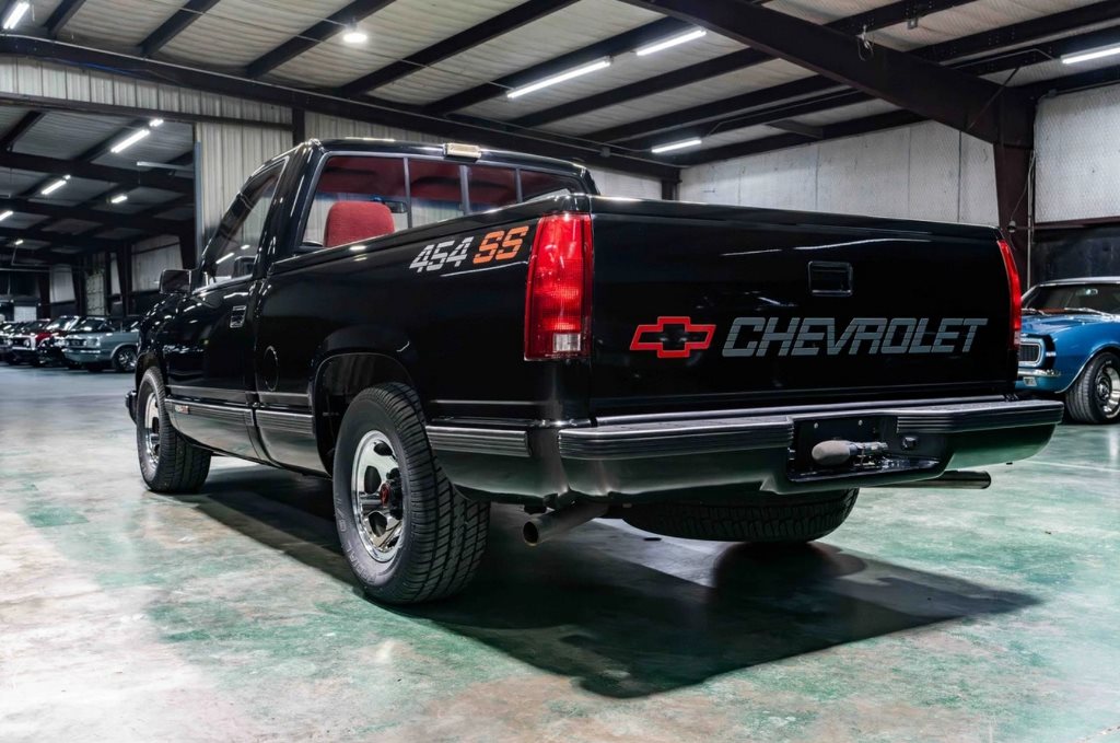 В листинге указано, что представленная модель является одним из первых спортивных пикапов на рынке. От стандартного Chevrolet C1500 версия 454SS отличается двойным выхлопом, глушителями Flowmaster, а еще 15-дюймовыми колесами SS с шинами 275/60 и передними дисковыми тормозами с электроприводом.