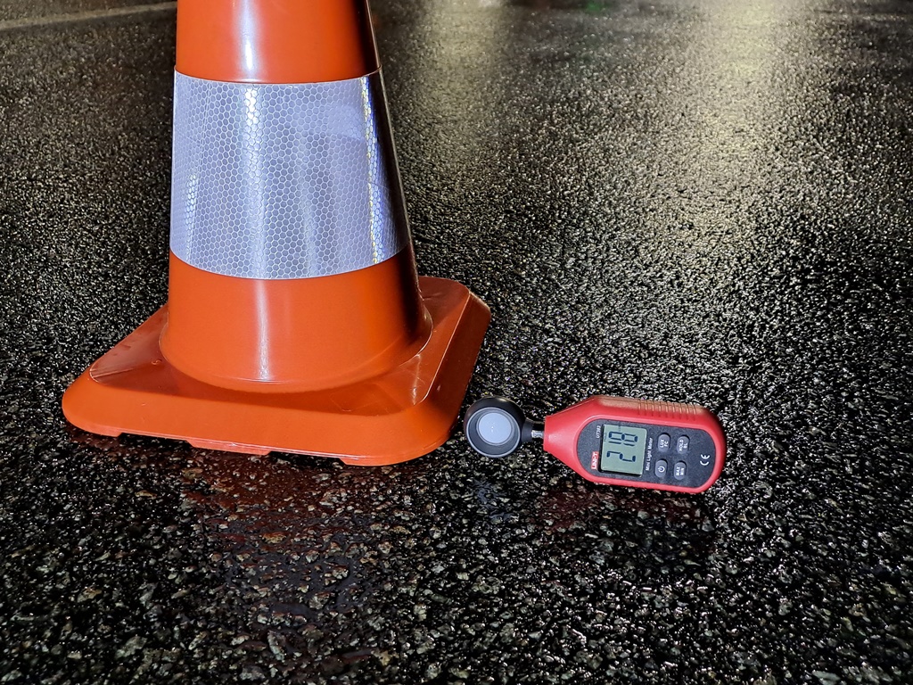 На отметке последних двух конусов замерялась также освещенность правой обочины. Это помогло понять, насколько далеко водитель может увидеть, например, человека или животного, стоящего вне проезжей части – и, возможно, собирается перебегать дорогу прямо перед машиной. Итоги замеров были занесены в таблицу.