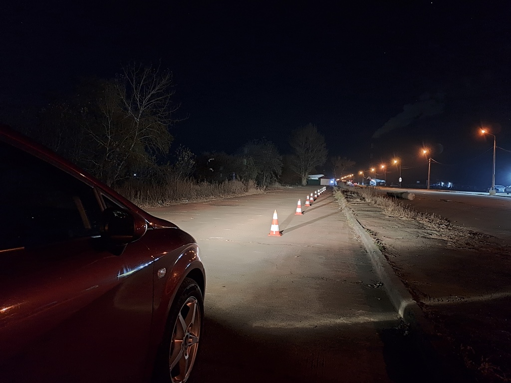 И включив ближний свет, люксметром определяли освещенность асфальта у каждого конуса – на первом этапе с галогенками в фарах, на втором – с установленными вместо них LED-лампами.