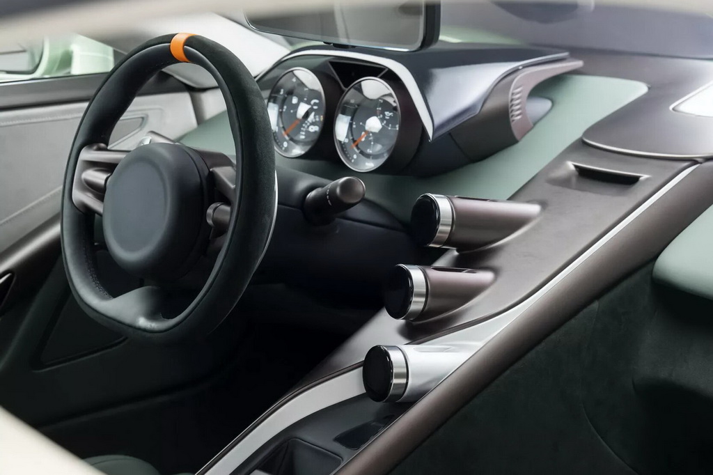 Тактильные поворотные элементы управления на наклонной центральной консоли оснащены встроенными сенсорными экранами, а все остальные функции управляются тумблерами на потолочной панели. В купе появились беспроводная зарядка, новая аудиосистема, интеграция Apple CarPlay, а также цифровое зеркало заднего вида. Инженеры Callum Design добавили систему кондиционирования воздуха и улучшили шумо- и звукоизоляцию суперкара.