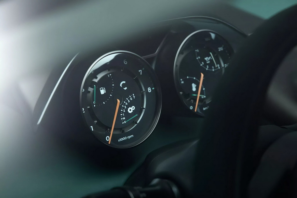 Спартанский салон преобразовали в роскошное, современное и комфортное пространство. Приборная панель и центральная консоль были изменены, наряду с установкой нового рулевого колеса и ковшеобразных сидений, отделанных кожей от Bridge of Weir темно-зеленых и кремовых тонов.