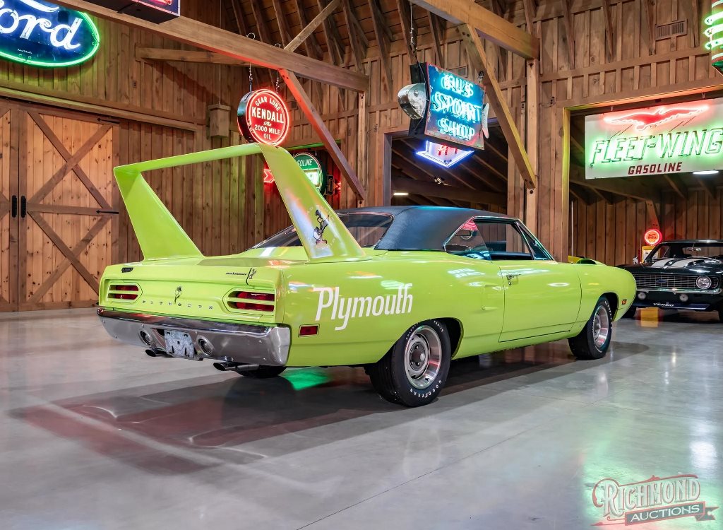 Легендарный спорткар, который является серийной версией гоночного автомобиля из NASCAR, почти 47 лет находился в секретной коллекции дилера и почти не выезжал на дороги. Он окрашен в лаймово-зеленый FJ5 и является одним из 65 экземпляров, выпущенных в этом цвете. Его салон отделан черной кожей, на которой также нет следов износа.