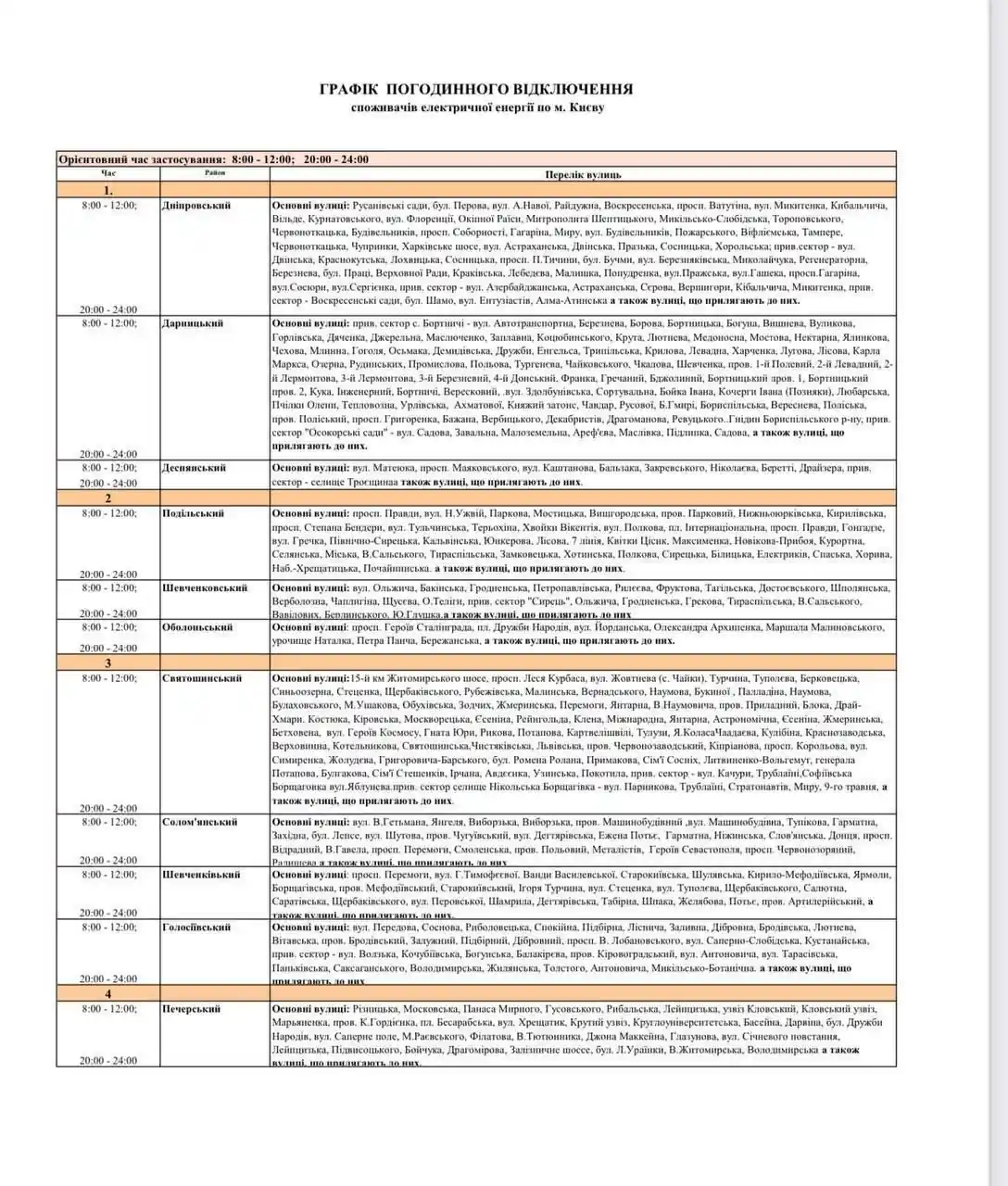 Из-за вчерашних массированных обстрелов с 11 октября в Киеве и Киевской области начнутся веерные отключения электроэнергии. График отключения опубликован на официальном сайте ДТЭК.