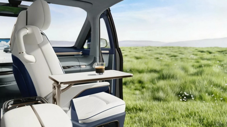 Среди других особенностей – ровный пол в салоне, обивка потолка из микрофибры и аудиосистема с 21 динамиком. Обитатели салона смогут воспользоваться беспроводной зарядкой для смартфона мощностью 50 Вт, системой ароматизации и просторным грузовым отсеком объемом 568 л и розеткой 220 В.