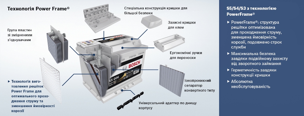 К примеру, у компании Bosch есть базовая серия батарей S3, она адресована машинам с небольшим уровнем энергопотребления. Но и в ней заложен ряд технологических преимуществ, влияющих на основные параметры АКБ. Так, решетка Power Frame обеспечивает лучшую проводимость, оптимальное прохождение тока и уменьшение вероятности коррозии. В результате – высокий пусковой ток и быстрый заряд аккумулятора.