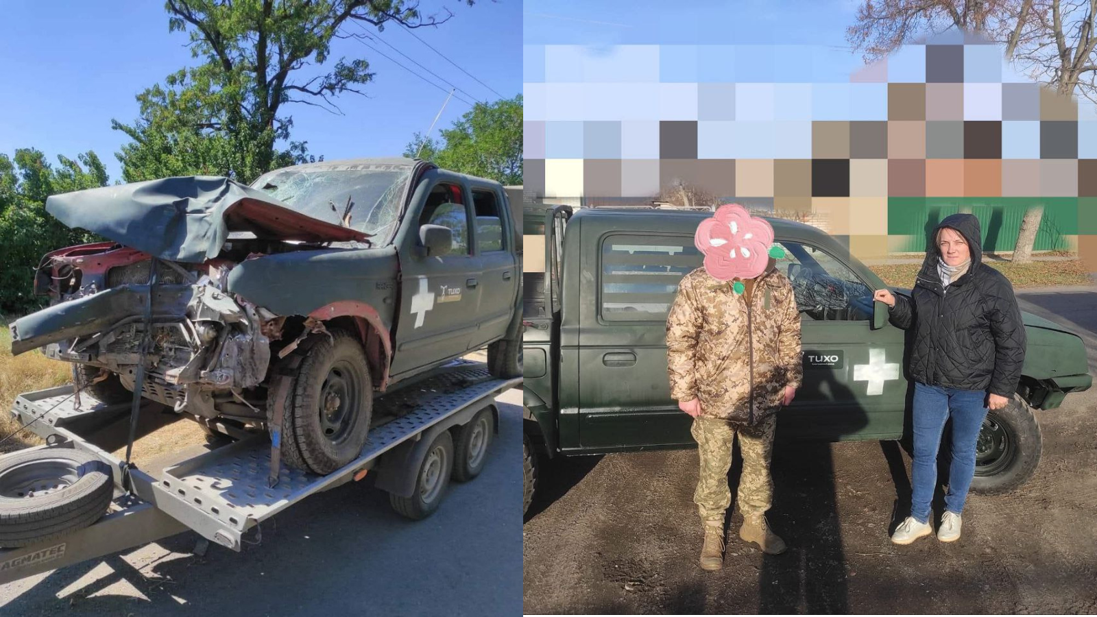 СТО “БАЗА” відновлює навіть сильно пошкоджені автівки. На фото ліворуч – пікап після бойового виїзду, праворуч – той самий автомобіль після капітального ремонту.