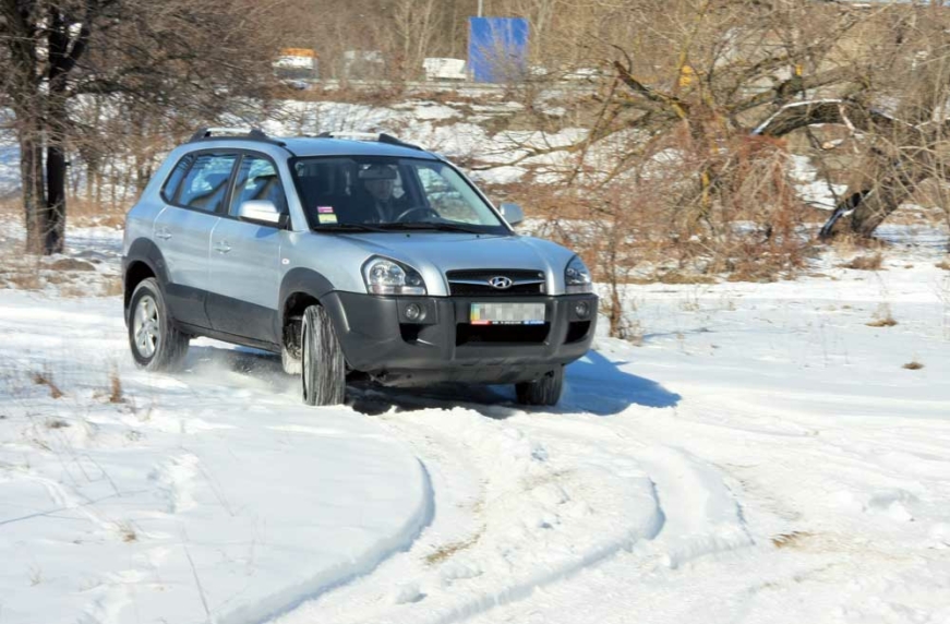 Разбитые зимние дороги для Tucson нипочем. Его длинноходная и энергоемкая подвеска легко съедала удары от намерзлостей на дороге и проплешин в асфальте. Да и за целостность легкосплавных колесных дисков не очень переживали, так как шины 215/65 R16 отрабатывают большую часть удара, не пропуская его на колесный диск.