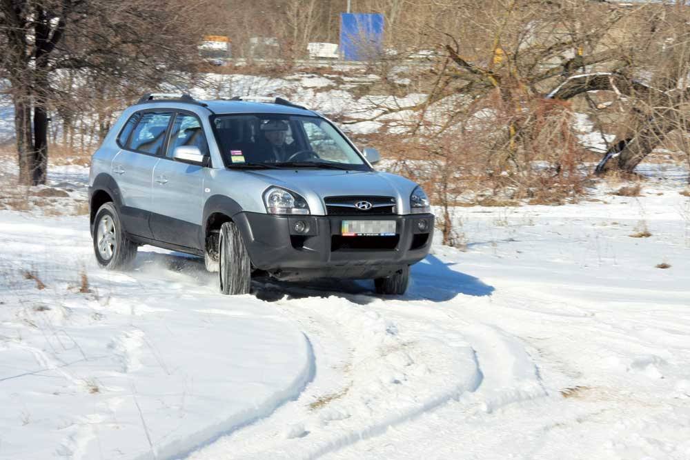 Разбитые зимние дороги для Tucson нипочем. Его длинноходная и энергоемкая подвеска легко съедала удары от намерзлостей на дороге и проплешин в асфальте. Да и за целостность легкосплавных колесных дисков не очень переживали, так как шины 215/65 R16 отрабатывают большую часть удара, не пропуская его на колесный диск.