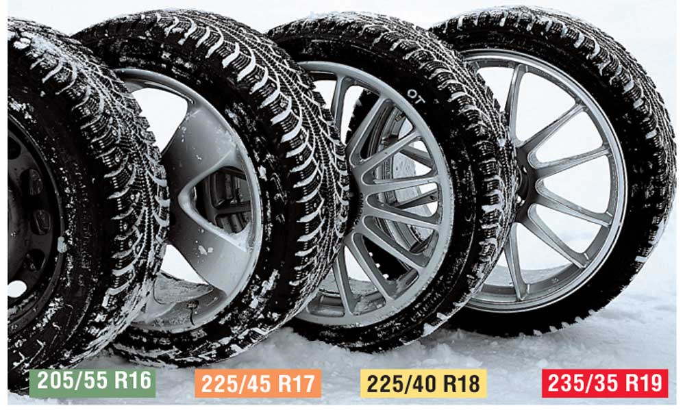 В грязи разница особенно чувствуется из-за очень мягкого покрытия. То же самое и в тесте на устойчивость к аквапланированию: широкий протектор не способен выдавливать воду или грязь так, как узкий. Более широкие шины на снегу также резче реагируют на управление, а при ошибках водителя с ними сложнее выходить из критической ситуации. Как и на льду, на снегу шины с посадочным диаметром 16 и 17 дюймов чувствуют себя уверенно и комфортно, а вот 18- и особенно 19-дюймовые значительно уступают.