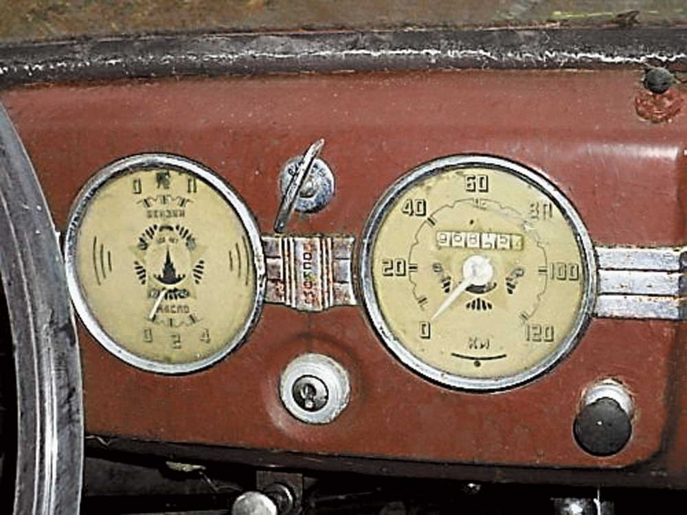 Юбилейная версия первого из «Москвичей» отличалась изображением звезд и Спасской башни московского Кремля на комбинации приборов (фото слева). | |
