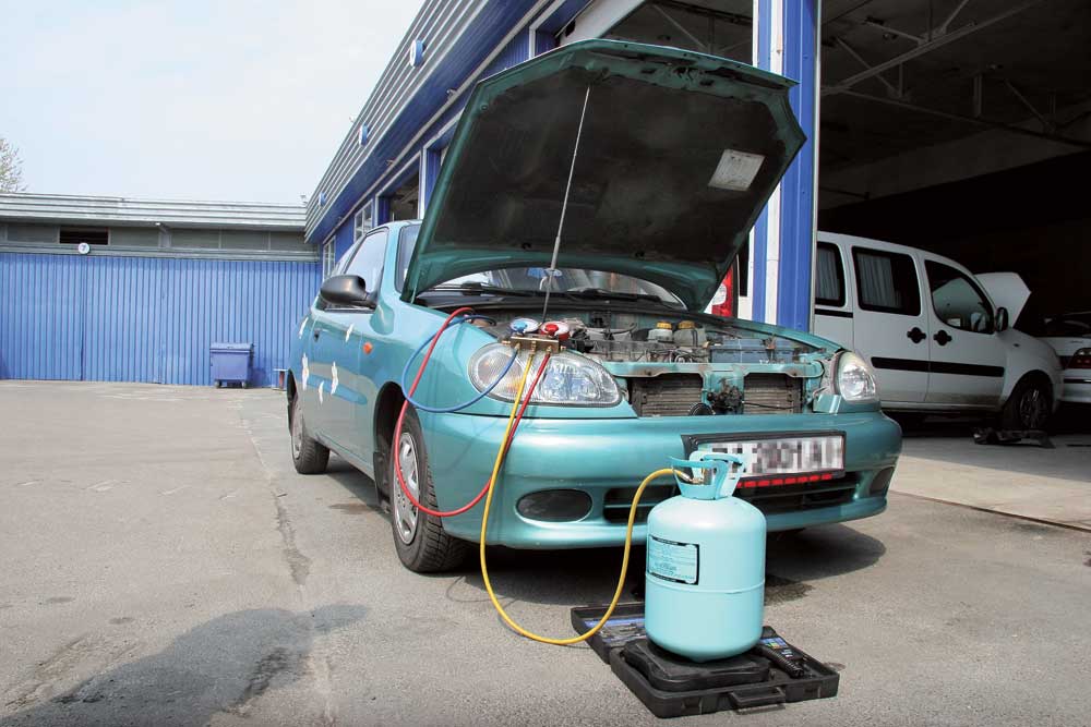 Сезонная диагностика кондиционера включает в себя проверку работоспособности, параметры давления, выявление утечек хладагента. Температура воздуха на выходе из дефлекторов при полностью исправной системе кондиционирования должна быть не выше 8–10 градусов. Давление хладагента в «низком» и «высоком» контурах (до и после компрессора) определяется парой манометров – если оно ниже нормы, значит, неисправен компрессор или часть рабочей жидкости улетучилась. Утечка происходит через неплотности, вызванные естественными повреждениями магистралей, коррозией деталей, износом или старением материалов уплотнений – сальников, втулок. Места утечек нередко выдают следы потения на деталях, оставляемые маслом, присутствующим в хладагенте. Для точной диагностики специалисты добавляют в хладагент специальный краситель, светящийся в лучах ультрафиолетовой лампы. Для современных автомобилей последних поколений регулярный профилактический осмотр особенно желателен, поскольку компрессор их климатической установки работает постоянно и компоненты системы изнашиваются намного интенсивнее. На дилерских СТО для диагностики и заправки систем кондиционирования и климат-контроля часто применяют специальные стенды. Они автоматически определяют количество хладагента и масла в системе, вакуумируют ее и заправляют необходимое количество упомянутых компонентов.