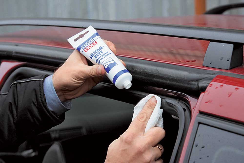 На морозе заметно снижается эластичность резины, поэтому уплотнители дверей на неровностях могут издавать неприятный скрип. Чтобы он не тревожил при езде по снежным дорогам, перед поездкой стоит пропитать их силиконовой смазкой.