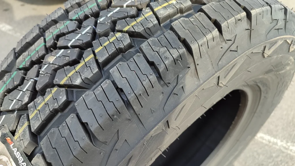 Чтобы шина хорошо держала автомобиль на заданном курсе при разных маневрах и нагрузках, блоки протектора Lassa Competus A/T 3 имеют сложные, направленные по разным направлениям контуры. Эти большие шашки перекрывают друг друга в боковой проекции, чтобы снизить уровень шумов и повысить плавность катения колеса по дороге. А это позволяет без особых оговорок использовать данную модель резины и во время дальних поездок по скоростным трассам.