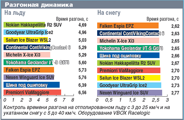 Китайское изделие Sailun Ice Blazer WSL2 не очень хорошо тормозит на льду и мокром асфальте и не лучшим образом управляется на снегу и сухом асфальте, но по ряду характеристик все-таки заслуживает уважения. А вот у шины Falken Espia EPZ самый большой дисбаланс в характеристиках на льду и снегу и на асфальте, из-за чего ее оштрафовали на один балл.