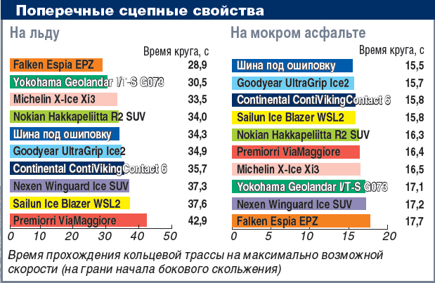 + Поперечные сцепные свойства на льду