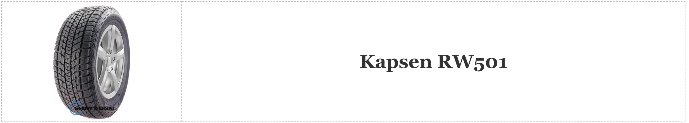 Зимняя шина, рассчитанная на большие погрузки – вплоть до легкого коммерческого транспорта. Поэтому она пригодна даже для массивных кроссоверов с мощным силовым агрегатом и соответствующей ходовой частью. Производит модель Kapsen RW501 китайская компания, продающая эту модель во многих странах мира. Данное колесо предназначено специально для снежных и ледяных поверхностей. Рисунок протектора формирует точный отзыв на руль, также схема дренажа хорошо подходит для зимней езды, потому что предполагает быстрое удаление снега, шуги и грязи из рисунка. Полуоткрытые канавки в центре образуют "снежные карманы", улучшающие сцепление на снегу. Самоблокированные трехмерные ламели повышают боковую стойкость и укрепляют общий контакт протектора с мокрой или оледенелой трассой.