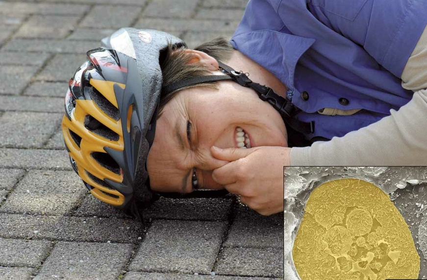 В Германии, где достаточно много велосипедистов, обратили внимание на необходимость замены старых велошлемов, которые при старении из-за трещин и усталости материалов уже не способны эффективно выполнять свои функции. Но как заставить велосипедистов сменить свои защитные каски? Специалисты Фраунгоферского института механики и материалов IWM во Фрайбурге в сотрудничестве с Институтом Фраунгофера по экологии, безопасности и энергетическим технологиям UMSICHT в Оберхаузене создали велошлем из полимерных материалов и пластмассы, который со временем начинает издавать неприятный запах. Происходит это по мере его износа, когда в материале образуются микротрещины. При появлении крупных трещин (например, при повреждениях) запах становится просто невыносимым. Его источником является «душистое» масло. Оно находится в микрокапсулах, которые «залиты» в полипропиленовый каркас шлема. Для обеспечения герметичнсти на стадии производства и в начале эксплуатации шлема капсулы покрываются слоем меламиновой смолы. Такие капсулы в процессе литья каркаса под давлением выдерживают температуру 200–300 град. по Цельсию и статическое давление 100 бар. Спроектированы они путем компьютерного моделирования. Размер капсул – от 1 до 50 мкм.