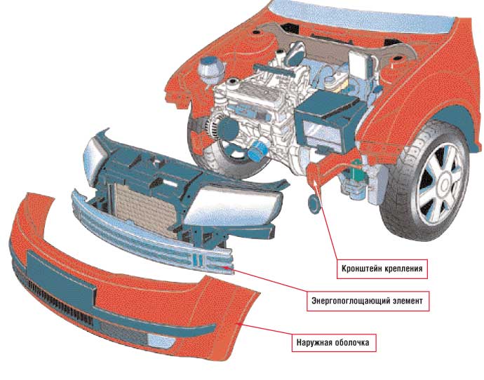 При столкновении машины с препятствием первыми принимают удар на себя бамперы.
