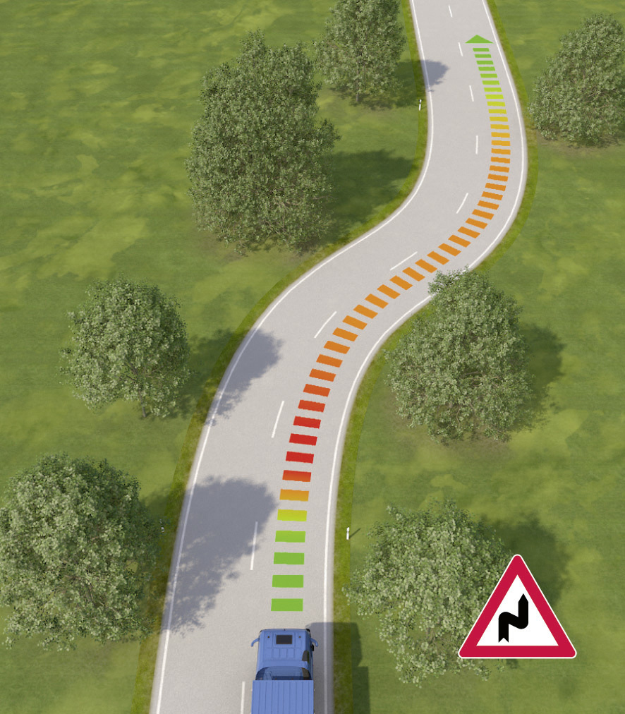 Теперь, благодаря модернизированной PPC, водители получили возможность использовать круиз-контроль и здесь, что реально повышает комфорт вождения, а это не только снижает стресс, но и уменьшает расход топлива до пяти процентов. Благодаря высокоточным картам, PPC “знает” ограничения скорости, которые находятся впереди, а также перекрестки и круговые развязки, а также принимает во внимание знаки остановки и приоритета движения. Даже когда водитель еще не видит все эти вещи, система позволяет транспортному средству вовремя перейти на движение по инерции или корректирует скорость и переключение передач так, чтобы обеспечить максимальную топливную экономичность.
