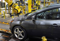 Дело в том, что при производстве кузова автомобиля и его сборке довольно часто нарушаются зазоры между кузовными деталями, не сходятся панели. Речь идет о неточностях, которые не видны визуально – десятые доли миллиметров, тем не менее это в итоге сказывается и на уровне акустического комфорта автомобиля и на его экономичности. А так как нынче наступила эра борьбы за экономичность и снижение выбросов СО2 в атмосферу, борьба идет за каждый процент экономии топлива. Чтобы исключить такие технологические погрешности, компания Ford внедряет на 17-ти своих автосборочных заводах роботы с лазерными измерителями и видеотехнологии. Стоимость этого проекта $100 млн.