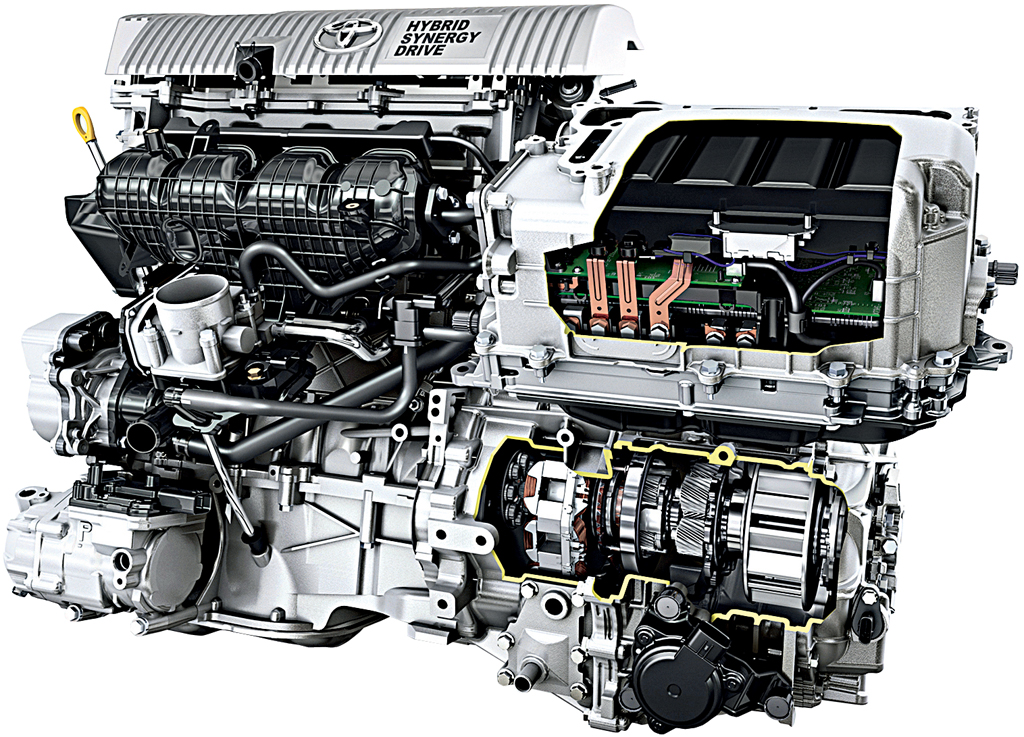 Гибридная силовая установка Toyota имеет довольно сложный, уникальный механизм распределения крутящего момента ДВС и электромотора