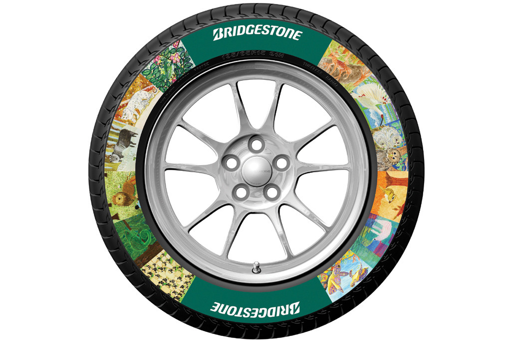 Технология нанесения рисунка на боковины покрышек компании Bridgestone подразумевает нанесение на боковину двух слоев – краски и защитного бесцветного материала для предохранения от обесцвечивания и механических повреждений. Благодаря применению окрасочных материалов на боковину можно будет нанести любой оригинальный цветной рисунок или фотографию.