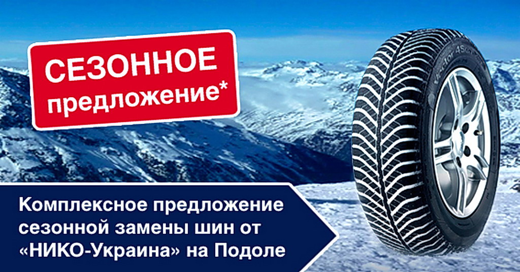 С 1 ноября по 31 декабря 2011 г. компания «НИКО-Украина» предлагает своим Клиентам воспользоваться комплексным предложением: при покупке комплекта зимней резины – услуги шиномонтажа предоставляются со скидкой 25%*