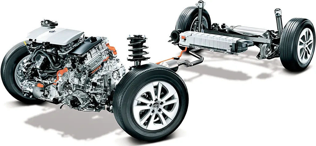 Комбинированный гибрид применяется и в полноприводных моделях. Но в них колеса передней оси приводятся в действие вышеописанной комбинированной системой, как у переднеприводных моделей, а для привода колес задней оси используется отдельный электродвигатель. Такая конструкция значительно проще, без сложной трансмиссии с карданными передачами и редукторами. Ее применяют в полноприводных внедорожниках, например в Toyota Highlander Hybrid и RAV4 Hybrid.