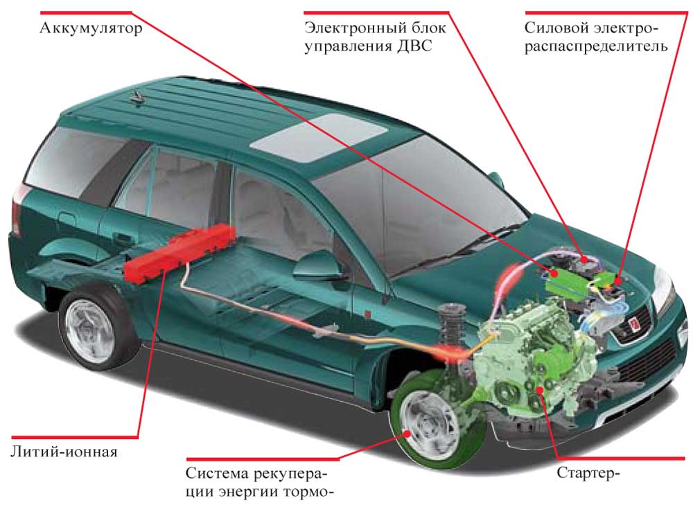 Следующая разновидность гибридных систем, предлагаемых концерном GM, имеет в своем составе стартер-генератор с ременным приводом (Belt-Alternator-Starter – BAS). Такое решение наиболее доступно по цене, так как легко интегрировать узел-гибрид, т. е. стартер-генератор в выпускаемые ДВС. Преимущество такой системы также в ее малом весе и компактных размерах. Электроника, управляющая ею, автоматически глушит мотор при остановке автомобиля, но как только водитель нажимает на педаль акселератора, вновь запускает его. Наиболее эффективна эта система в городских условиях движения, для которых характерны частые остановки, разгоны и торможения. Кроме того, при торможении двигателем генератор вырабатывает электроэнергию для подзарядки литий-ионного аккумулятора. Благодаря использованию подобной системы экономия топлива в городе может достигать 10–25 процентов.